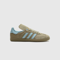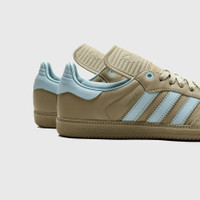 - ID8712 - OrbGrn/AshGre/AshGre - Pharrell Williams refreshes the classic Samba in premium materials - Premium leather upper - Suede overlay - Three-stripe branding across the lateral and medial sidewalls - Embossed logo on the elongated fold-over tongue - Printed "HUMAN RACE" on the side - Zig-zag stitching - Rubber outsole