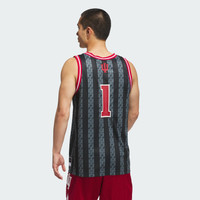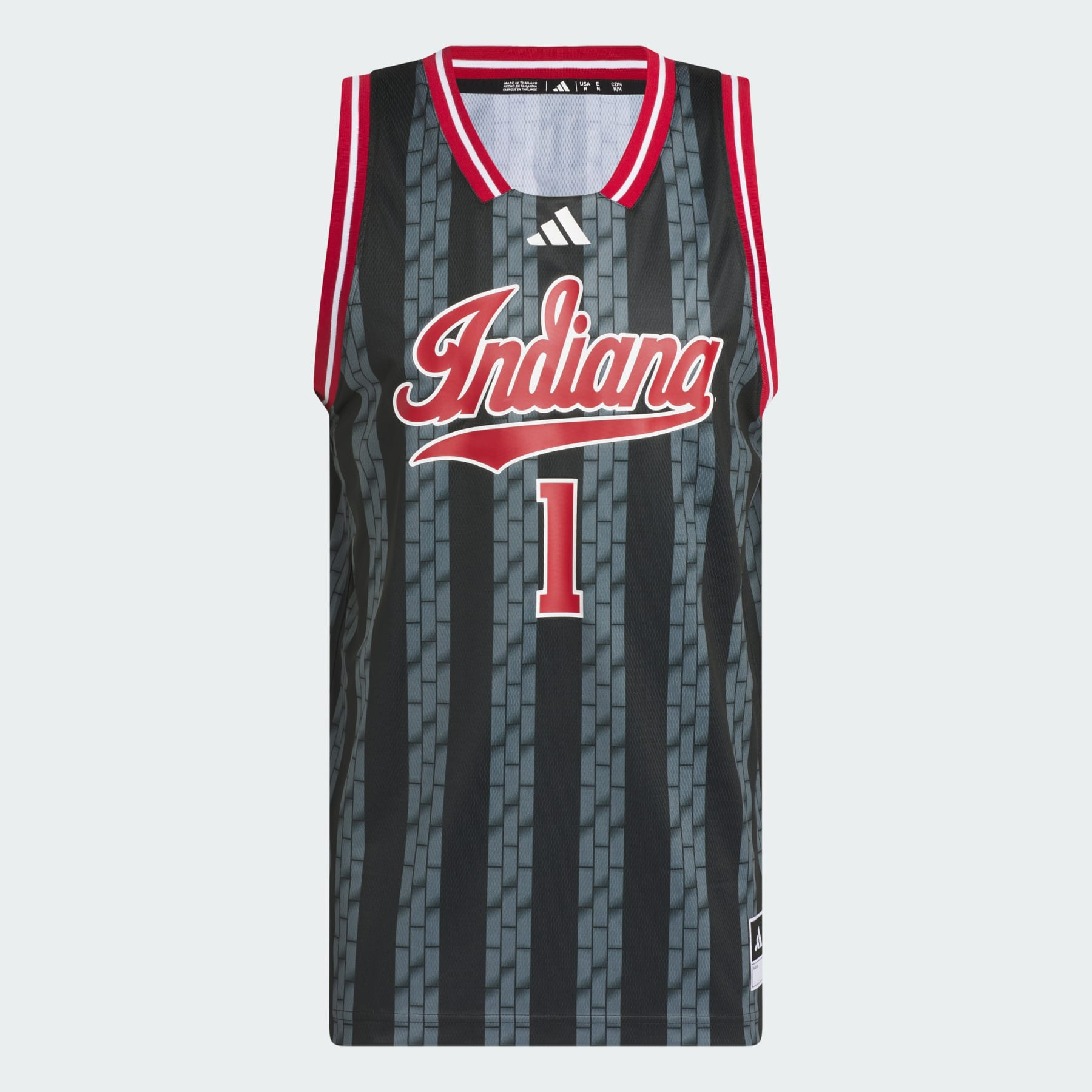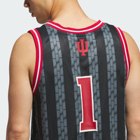 A basketball jersey for Hoosiers fans. Take to the court or the stands in this basketball jersey from adidas, and let everybody know you root for Indiana. Styled to be like the ones worn by Hoosiers hoopers, this jersey will keep you comfortable whether you're getting up jumpers or belting out the fight song. School colors and graphics complete the official look. Details - Slim fit - V-neck - 100% polyester (recycled) - Indiana Hoosiers graphics - Imported - Product code: JX6218 - Product color: Black