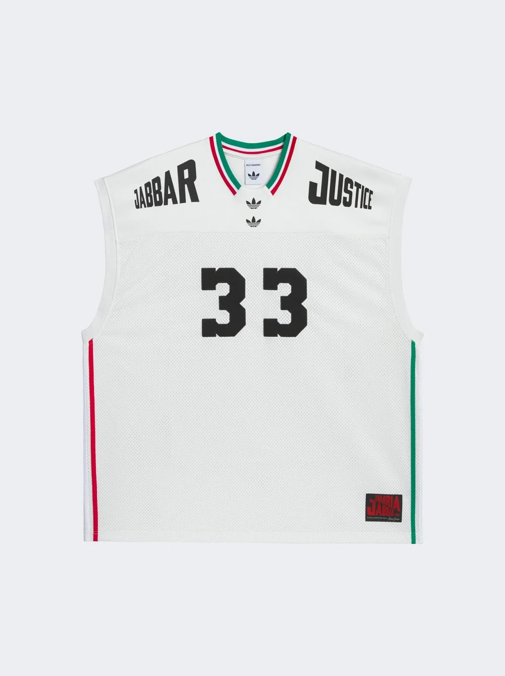 Details - Adidas Originals X Willy Chavarria - Inspired by Chicano culture and Mexican heritage - Oversized basketball jersey - Heavyweight mesh and double knit space fabric - Ribbed, three-stripe collar - Embroidered double Trefoils on the front - Embroidered Chavarria and "33" on the back Size Information: Vendor Color Code: Brand Style: JV6410 Designer/Brand: ADIDAS