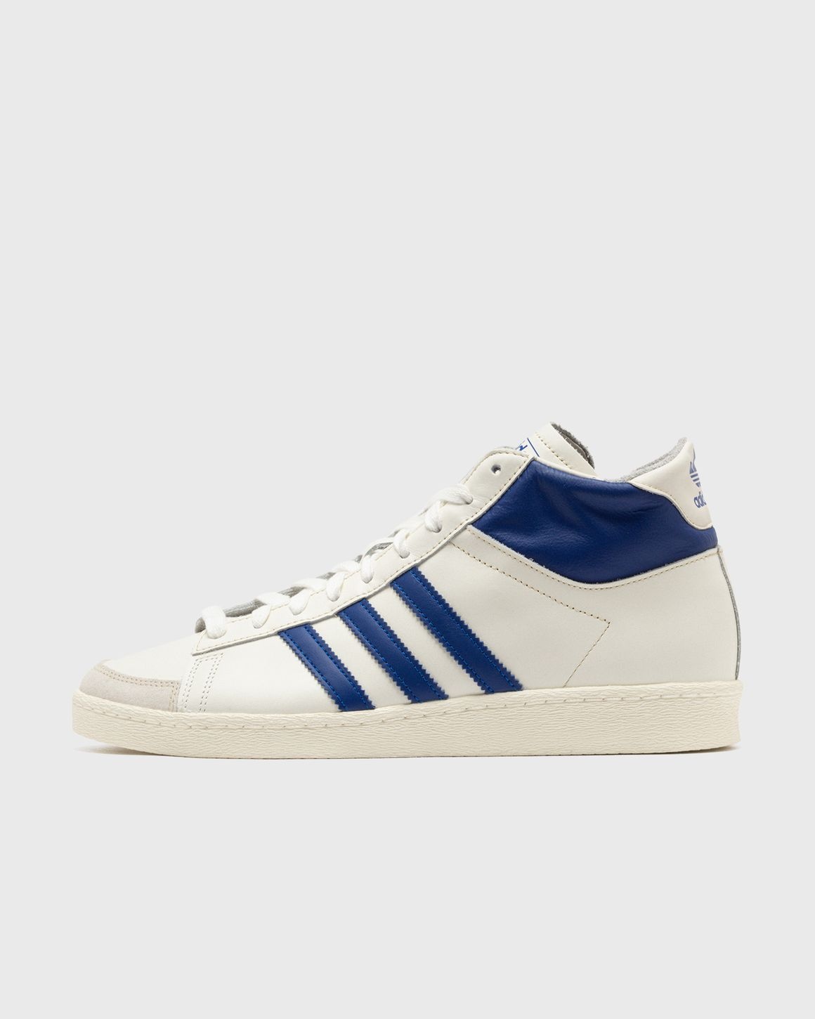 Paying homage to one of the greatest basketball players of all time, these adidas Jabbar OG high-top shoes bring the casual style of the 70s back to the present day. The smooth leather upper combined with a supple leather lining ensures a comfortable feel with every step. The grippy rubber outsole and characteristic heel collar are inspired by typical hardwood designs and round off the look. - Lace-up fastening - Leather upper - Leather lining - Rubber outsole Article Number: IH5316 Gender: Men Color: OWHITE/CROYAL/CREWHT Material: 30% Rubber, 70% Synthetic/Textile