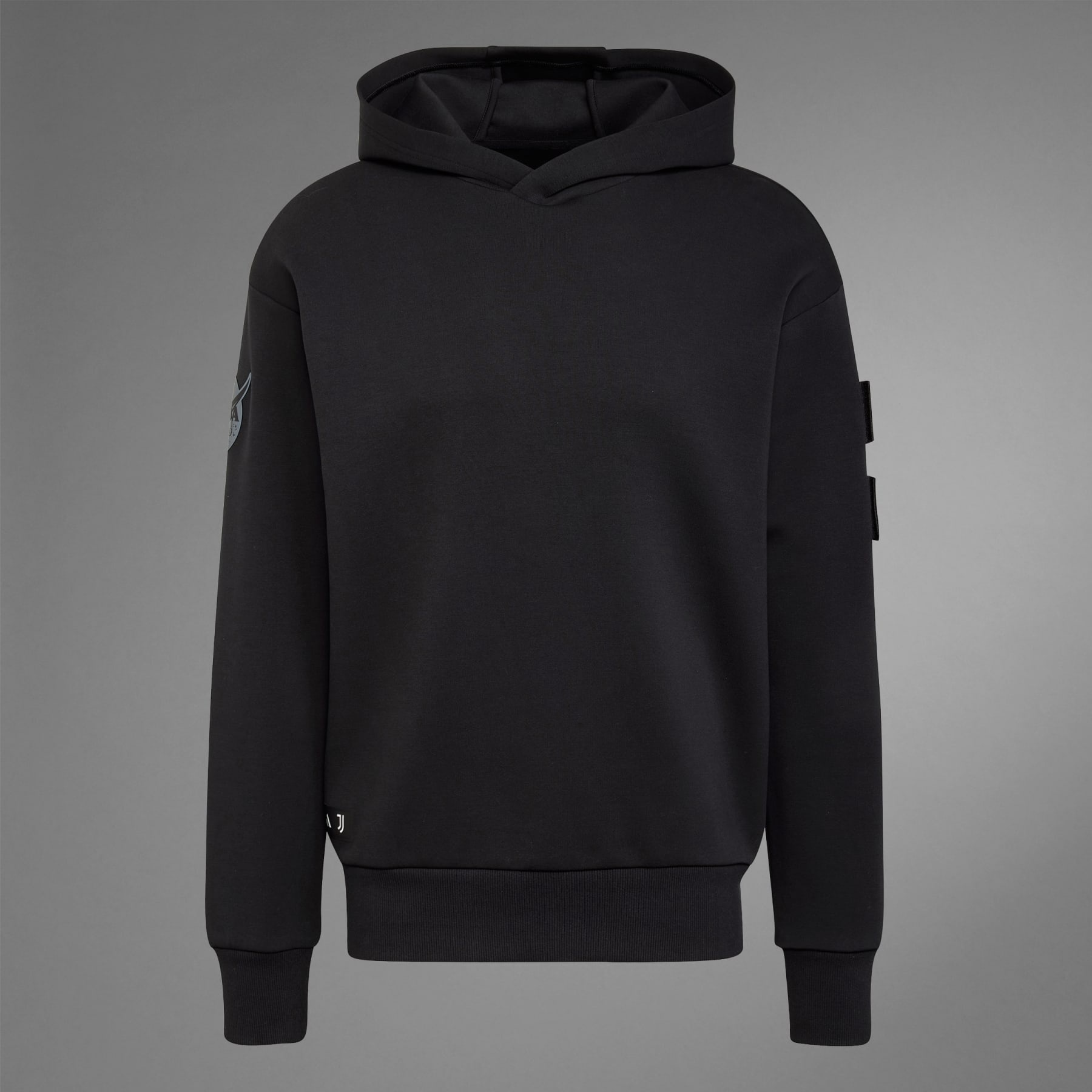 A Juventus hoodie showing off NASA-inspired details. One giant leap for Juventus apparel. This adidas hoodie stands out from the crowd thanks to its NASA-inspired details. Featuring soft doubleknit fabric and ribbed cuffs, this easygoing essential pairs perfectly with everything from track pants to jeans. Whether you're exploring your own soccer world or journeying well beyond the touchline, it will broadcast your fandom. Details - Regular fit - Drawcord-adjustable hood - 66% cotton, 34% polyester (recycled) - Kangaroo pocket - Ribbed cuffs and hem - Imported - Product code: JE3129 - Product color: Black