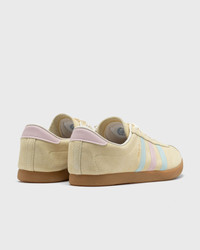 Inspired by the dynamic city on the Rhine and paying homage to UEFA EURO 2024, the adidas Köln 24 sneaker comes with a premium suede upper and eye-catching tri-colored 3-Stripes inspired by the colorful houses of Cologne's old town. The profile of the natural rubber outsole is based on the famous brick buildings in front of the stadium. - Suede upper - Textile lining - Natural rubber outsole Article Number: IG6279 Gender: Men, Women Color: ALMYEL/ALMBLU/CLPINK Material: Full: 100% Leather/Textil
