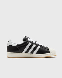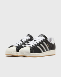 adidas and Korn have teamed up for a new collection inspired by Korn's 1994 debut album, giving the classic Superstar a nostalgic yet modern twist. The sneaker features an eye-catching black and white leather design. It features co-branded overlays with Adidas' iconic Three Stripes, which are adorned with grain logos. The graffiti-style 'Superstar' branding and guitar pick hang tags add a personal touch that honors the band's distinctive look. Article Number: IH1313 Gender: Men, Women Color: CBLACK/TRANSL/BETSCA Material: Full: 100% Leather/Synthetic