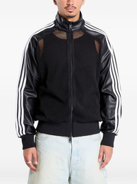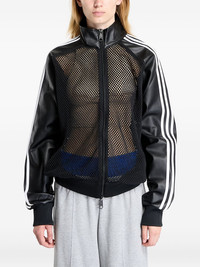x Jeremy Scott mesh track top Highlights - Black - Leather panels - Mesh fabric - Three-stripe detail - Embossed logo - Zip fastening Imported Composition Outer: Polyurethane 100% Lining: Recycled Polyester 100% Washing instructions Machine Wash