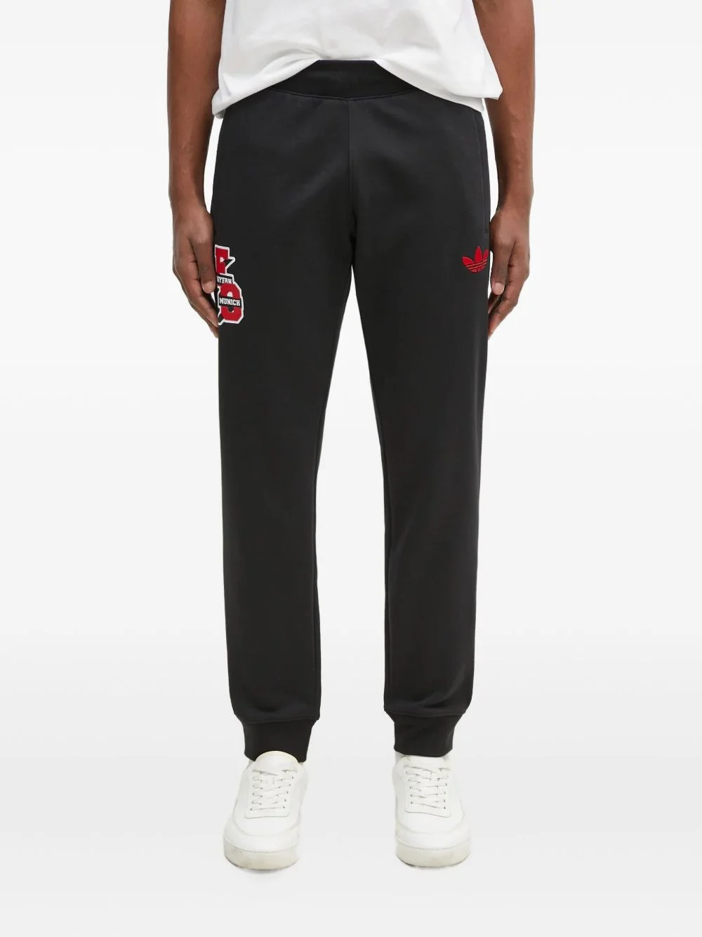 logo-patch trousers Highlights - Black - Cuffed hems - Side pockets - Embroidered logo - Elasticated waist - Red details Imported Composition Cotton 70%, Polyester 30% Washing instructions Read Manufacturer Guidelines