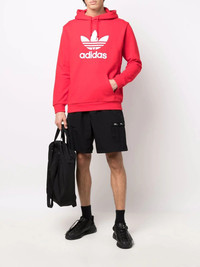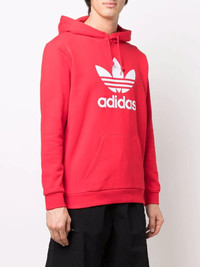 Red cotton logo pullover hoodie from adidas featuring logo print to the front, drawstring hood, long sleeves and fitted-cuff sleeves. Highlights - Red - Cotton - Logo print to the front - Drawstring hood - Long sleeves - Fitted-cuff sleeves Imported Composition Cotton 100%