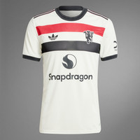 Unite behind your colors in a performance jersey made with recycled materials. Soccer pride never falls out of fashion. This Manchester United third authentic jersey salutes the flags that follow the club home and away, while also adding some classic adidas heritage. Shorthand for sporty style, a Trefoil and red devil badge stand out from that tricolor chest bar. Stay-cool HEAT.RDY fuels dominant displays. This product is made with 100% recycled materials. By reusing materials that have already been created, we help to reduce waste and our reliance on finite resources and reduce the footprint of the products we make. Details - Slim fit - Crewneck - 100% recycled polyester doubleknit - HEAT.RDY - Manchester United heat-applied crest - Imported - Product code: IY7814 - Product color: Off White