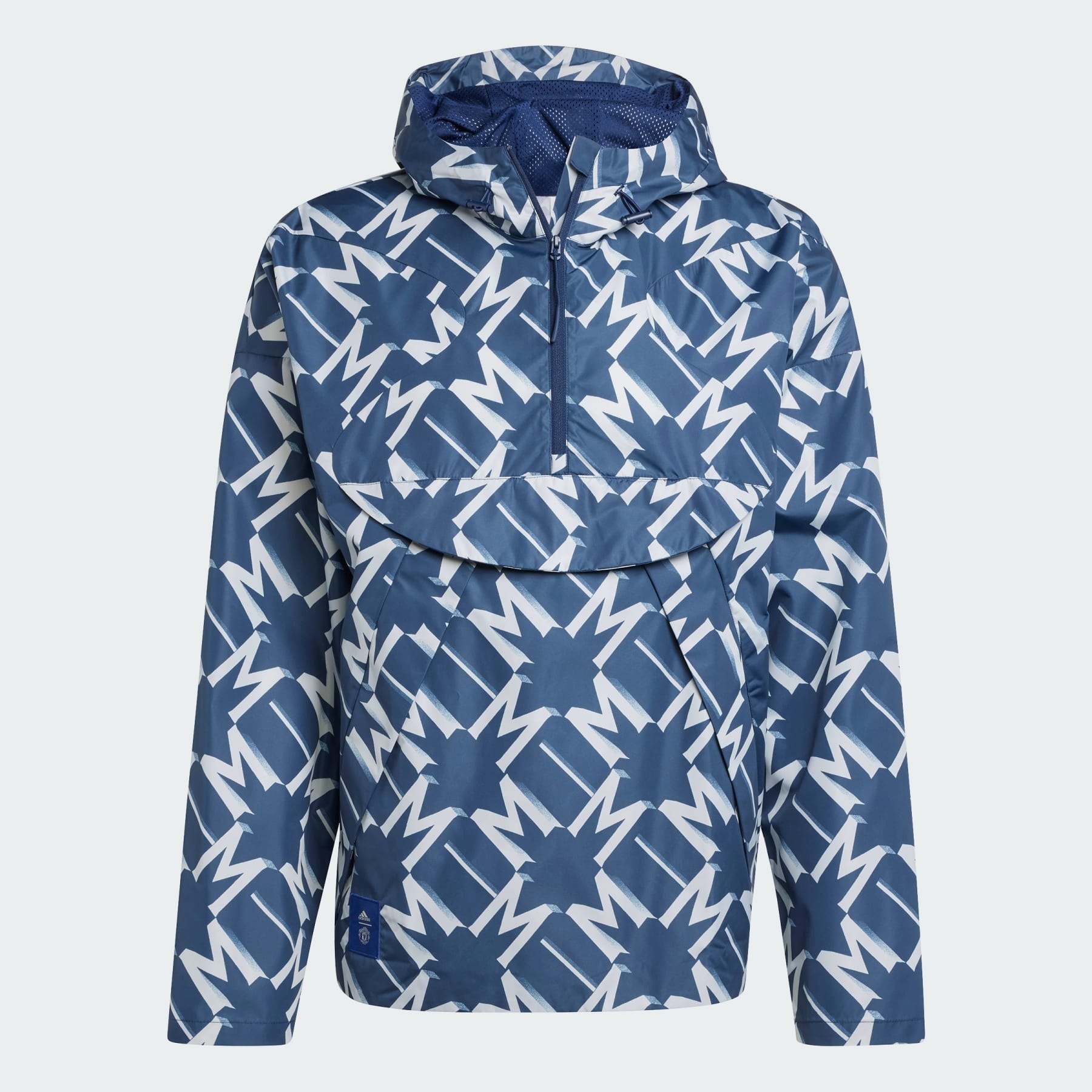 Catch the eye in a Man Utd windbreaker made with recycled materials. Prepare for any adventure in this adidas Manchester United windbreaker. Armed with a bungee-adjustable hood and a durable plain weave fabric shell, this half-zip jacket will keep you sheltered from the elements. Eagle-eyed passers-by will spot your soccer fandom thanks to that away jersey-inspired graphic and a small badge sewn above the hem. This product is made with 100% recycled materials. By reusing materials that have already been created, we help to reduce waste and our reliance on finite resources and reduce the footprint of the products we make. Details - Regular fit - Half zip with bungee-adjustable hood - 100% recycled polyester plain weave - Kangaroo pocket - Droptail hem - Manchester United sewn-on crest - Imported - Product code: IT4194 - Product color: Night Indigo / Clear Onix
