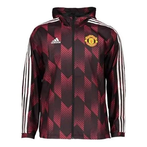 adidas Manchester United Stripe Full Print Athleisure Casual Sports Hooded Jacket Purple Red GR3872