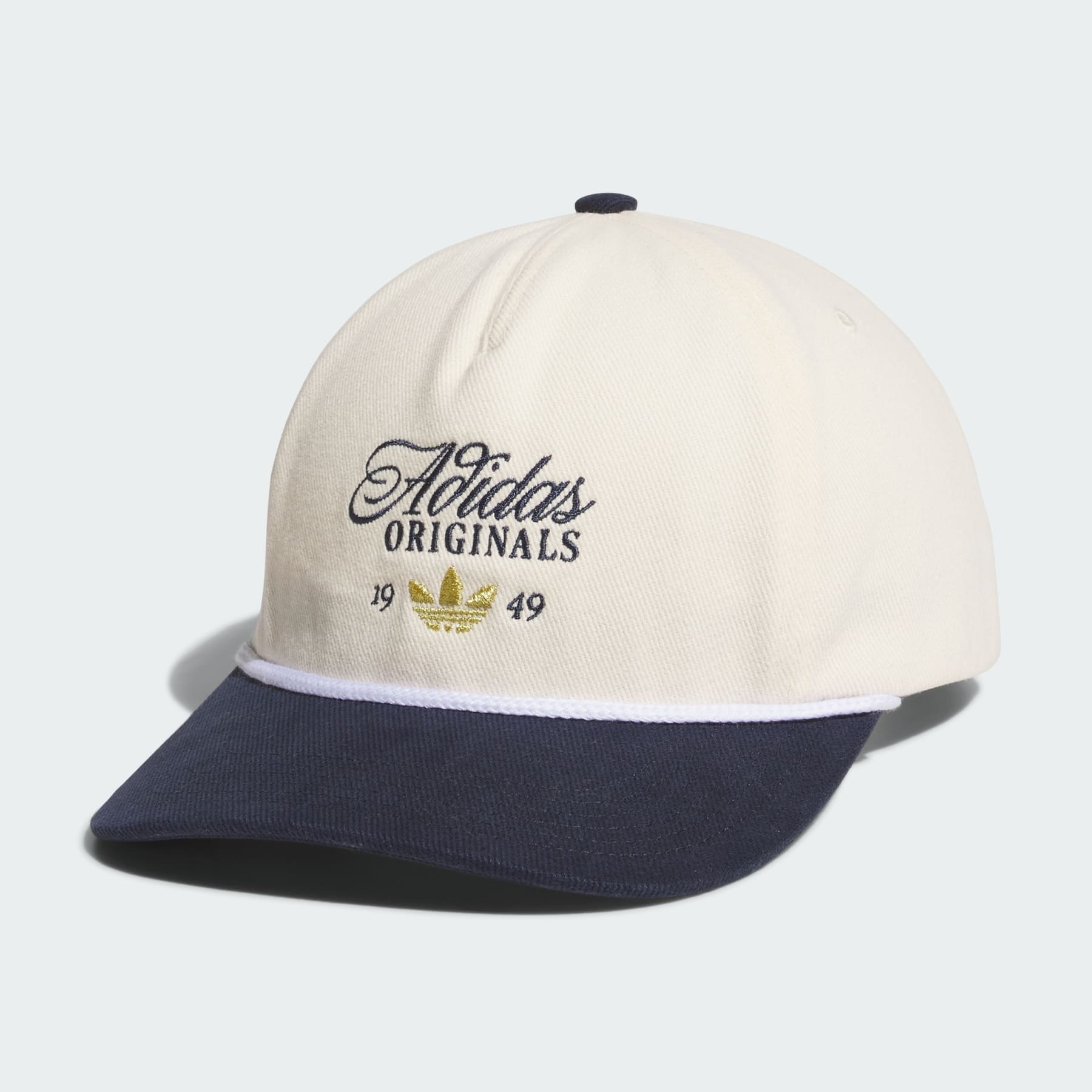 A comfortable athletic hat for everyday wear. A masterpiece in sporty simplicity. This adidas strapback hat features classic athletic-style embroidery on the front. The relaxed five-panel crown sits comfortably atop your head, and the pre-curved brim keeps the glare out of your eyes. Details - 100% cotton - Rope attached on brim - Slight .5" brim curve - Strapback closure - 5-Panel Relaxed Silhouette - Imported - Product code: JJ7603 - Product color: Wonder White / Night Indigo