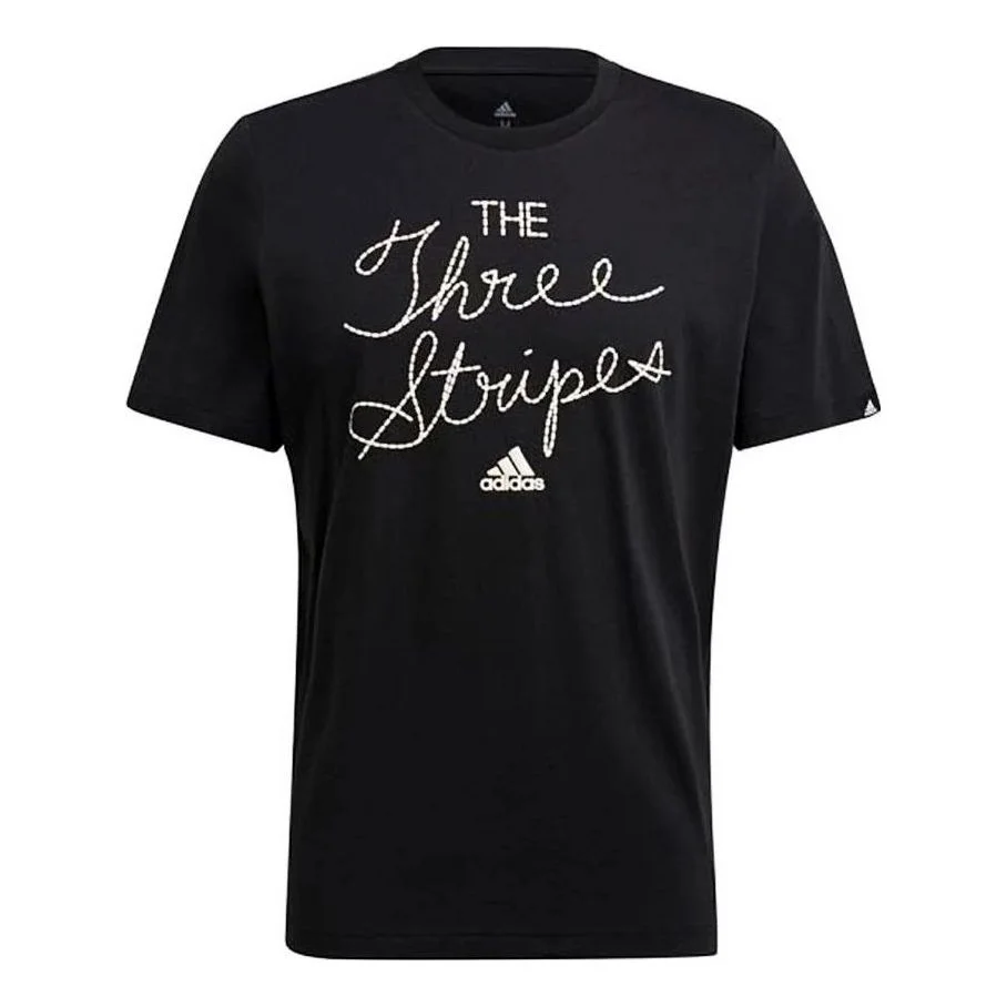 Men's adidas Alphabet Printing Sports Gym Short Sleeve Black T-Shirt GQ8848