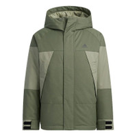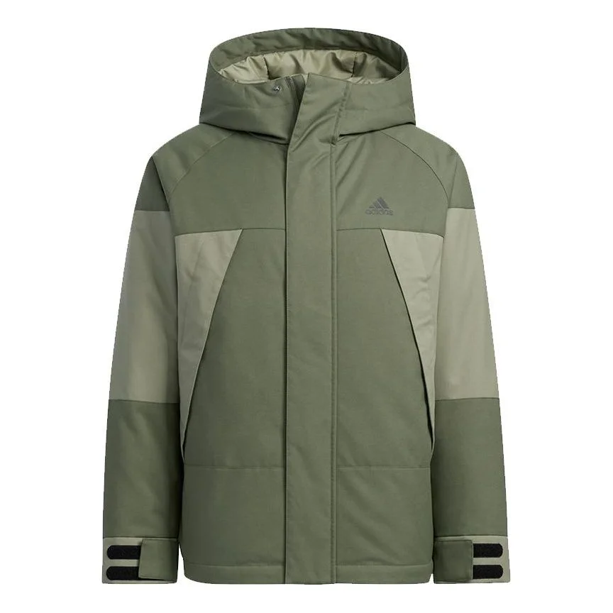 Men's adidas Cb Bos Logo Jkt Outdoor Colorblock Sports With Down Feather Military Green Jacket H2309