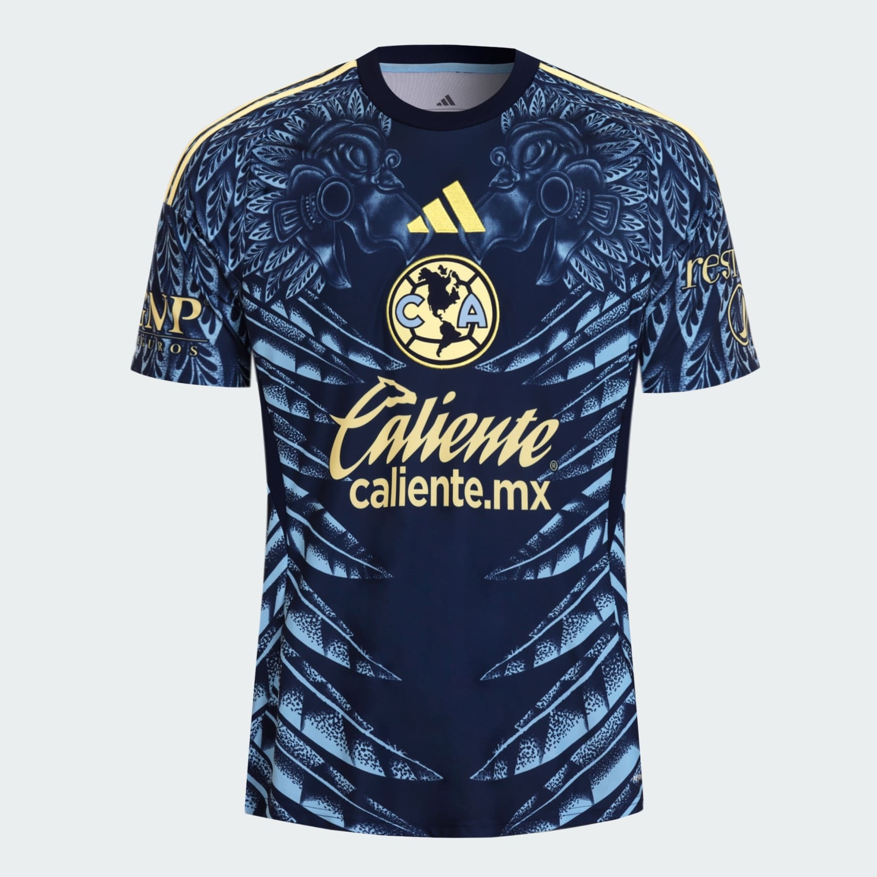 Fly your soccer colors in this eagle-inspired Club America away jersey. Feel your fandom soar every time you pull on this Club America jersey from adidas. Enveloped by eagle feathers and inspired by Mexican cultural heritage, its striking design celebrates the club's "Las Aguilas" nickname. Moisture-managing AEROREADY and a prominent, centered club crest ensure you stay comfortable and proud whenever you back your team. Details - Slim fit - Crewneck - 100% polyester (recycled) - AEROREADY - Club America sewn-on crest - Imported - Product code: JN8618 - Product color: Team Navy Blue 2