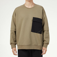 Men's adidas Contrasting Colors Pocket Sports Round Neck Pullover Military Green H39348