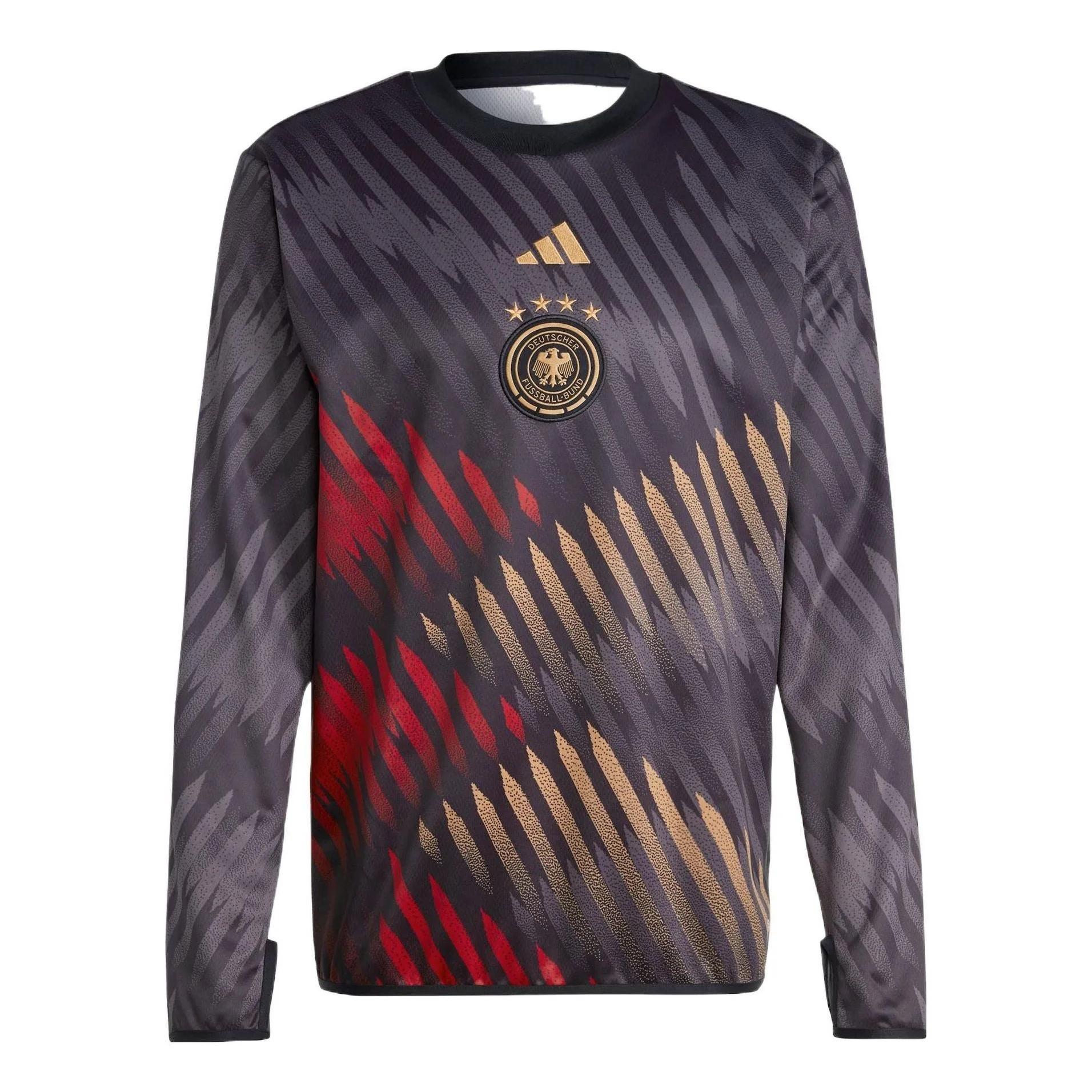 Men's adidas Dfb Pre Wrmtop Round Neck Stripe Detail Logo Printing Pullover Long Sleeves Black HC128