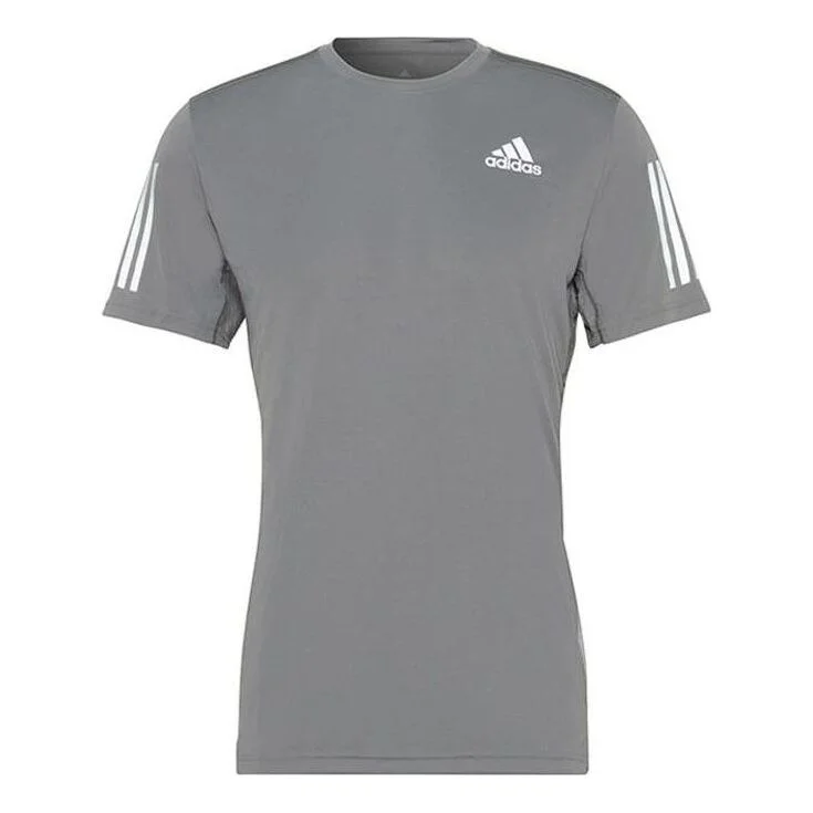 Men's adidas Fitness Training Breathable Logo Stripe Sports Short Sleeve Gray T-Shirt HB7430