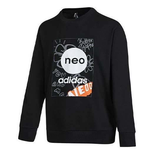 Men's adidas Logo Pattern Printing Round Neck Long Sleeves Pullover Black HM7433