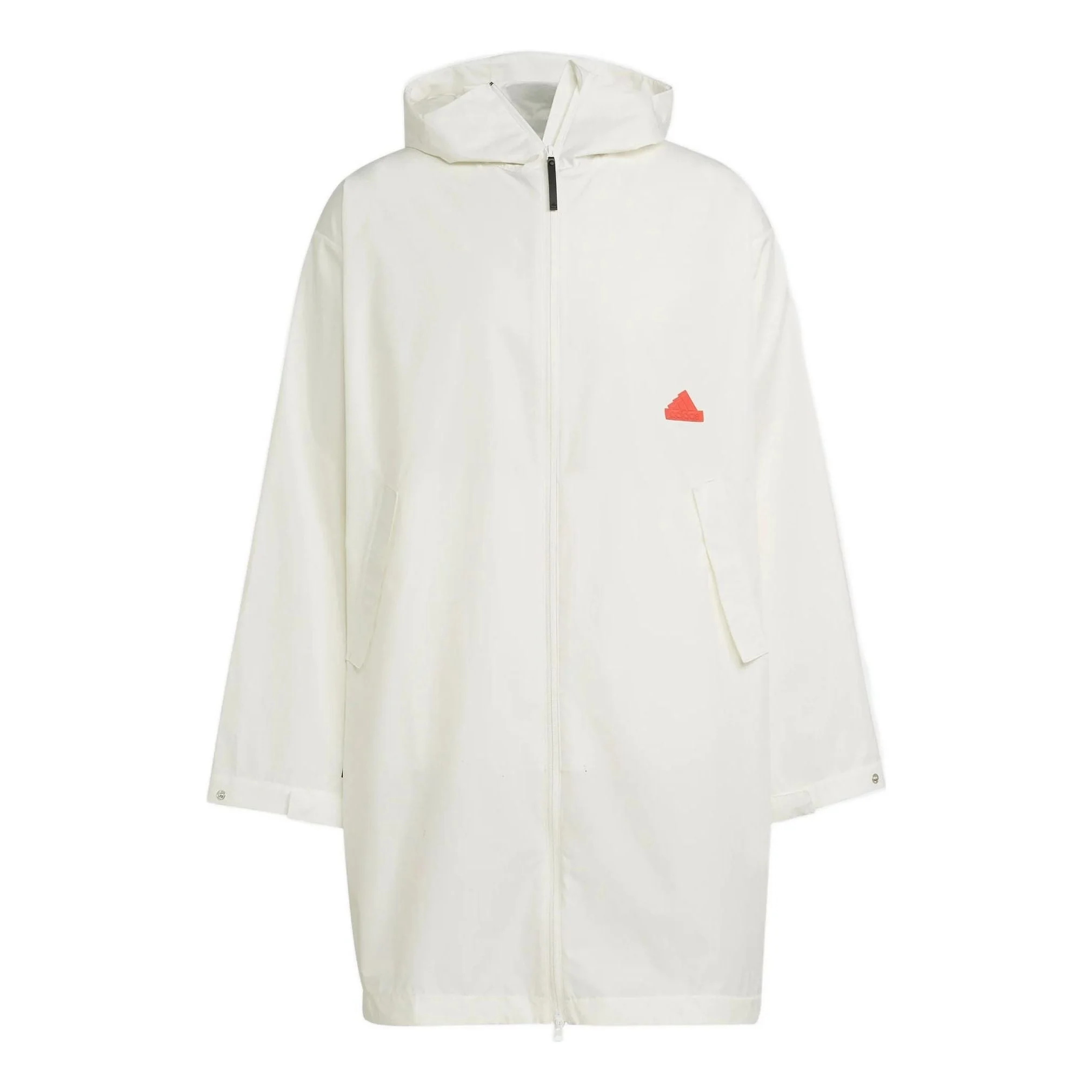 Men's adidas Logo Solid Color Hooded Jacket Windbreaker White HN1943