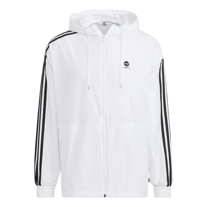 Men's adidas neo Stripe Logo Zipper Hooded Jacket White HN8788