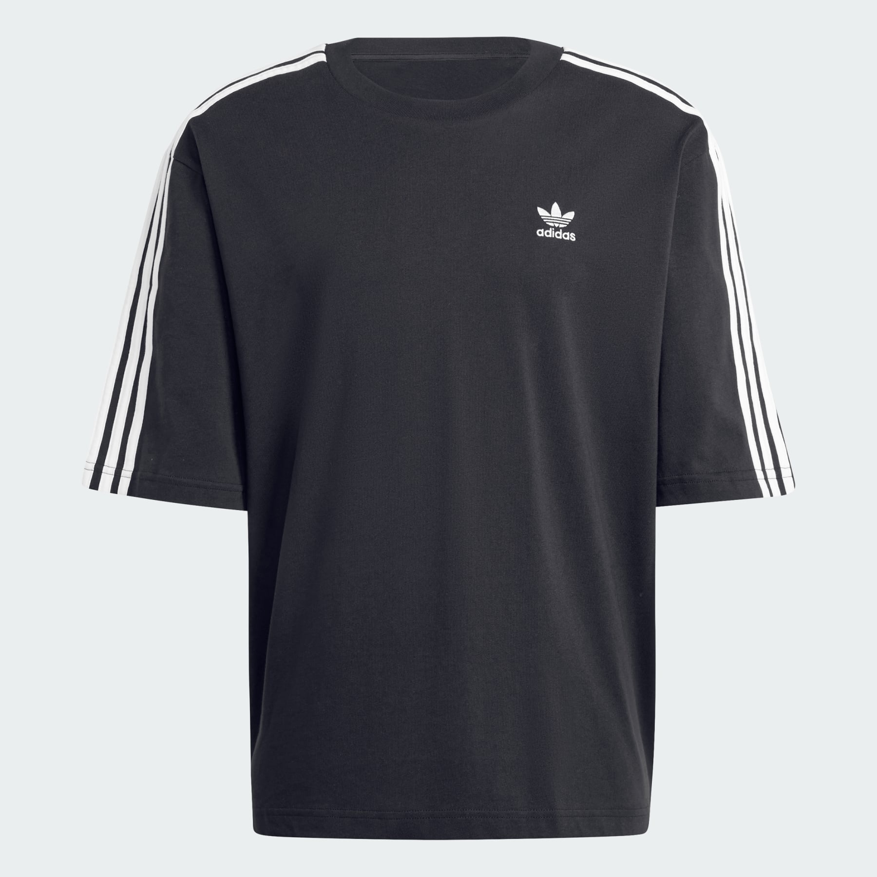 A classic t-shirt with a comfy, roomy cut. You know a style is meant to last when it's still turning heads decades after its debut. This adidas t-shirt taps into that timeless appeal with an oversized cut and bold 3-Stripes design. Soft cotton keeps you comfortable whether you're chilling at home or heading to the game with friends. Wear after wear, this tee will always be a classic. The cotton in this product has been sourced through Better Cotton. Better Cotton is sourced via a chain of custody model called mass balance. This means that Better Cotton is not physically traceable to end products. Find out more here: https://bettercotton.org/who-we-are/our-logo/ Details - Loose fit - Ribbed crewneck - 100% cotton single jersey - Sourced through Better Cotton via a system of mass balance and therefore this product may not contain Better Cotton - Imported - Product code: IZ1832 - Product color: Black