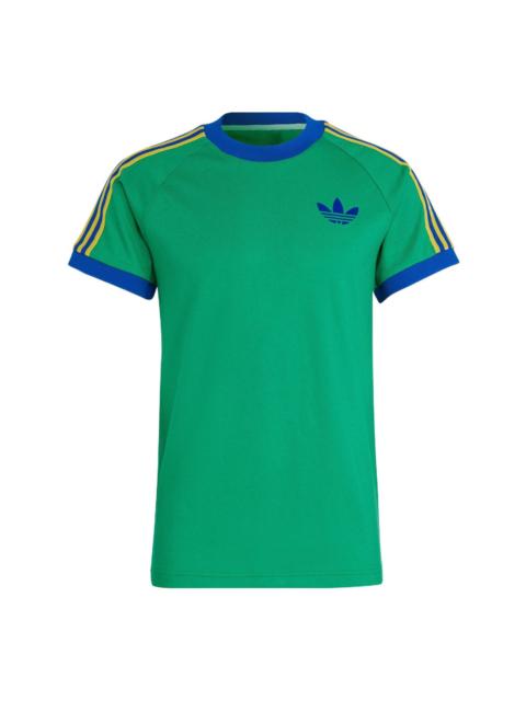 Men's adidas originals Cali Tee Shoulder Stripe Ribbed Round Neck Short Sleeve Milky White T-Shirt I