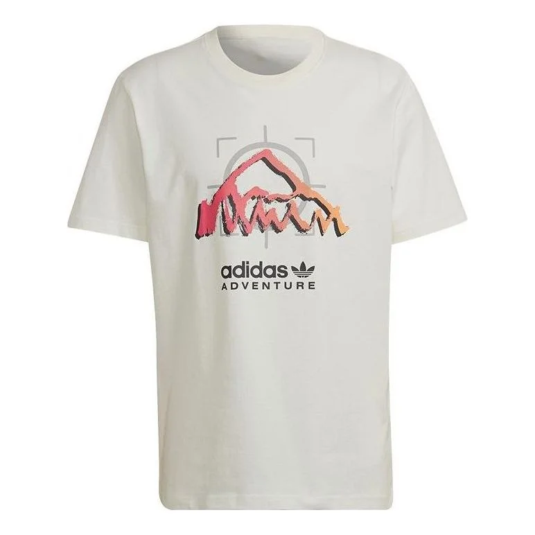 Men's adidas originals Mountain Peak Alphabet Logo Printing Round Neck Casual Short Sleeve White T-S