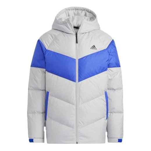 Men's adidas Outdoor Sports Colorblock Hooded With Down Feather Gray Jacket H20791