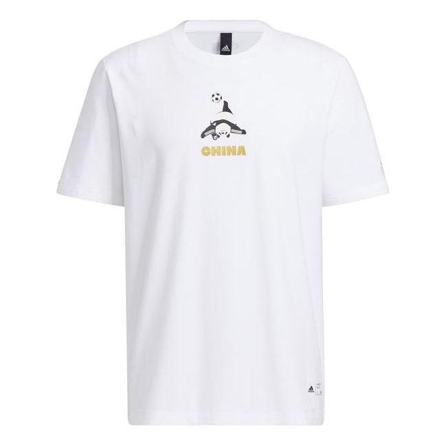 Men's adidas Panda Printing Round Neck Short Sleeve White T-Shirt HS4397