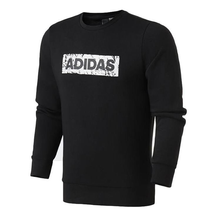 Men's adidas Printing Alphabet Round Neck Pullover Long Sleeves Black DW4601