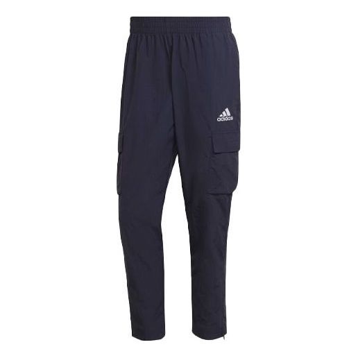 Men's adidas Solid Color Logo Cargo Pocket Casual Sports Pants/Trousers/Joggers Blue HE1860