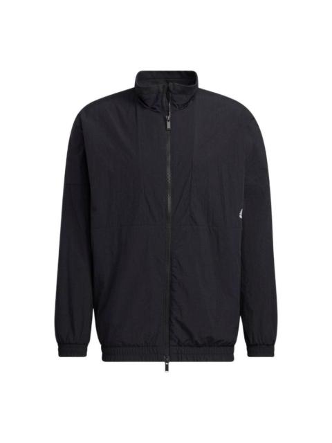 Men's adidas Solid Color Logo Casual Zipper Cardigan Jacket Black HM2686