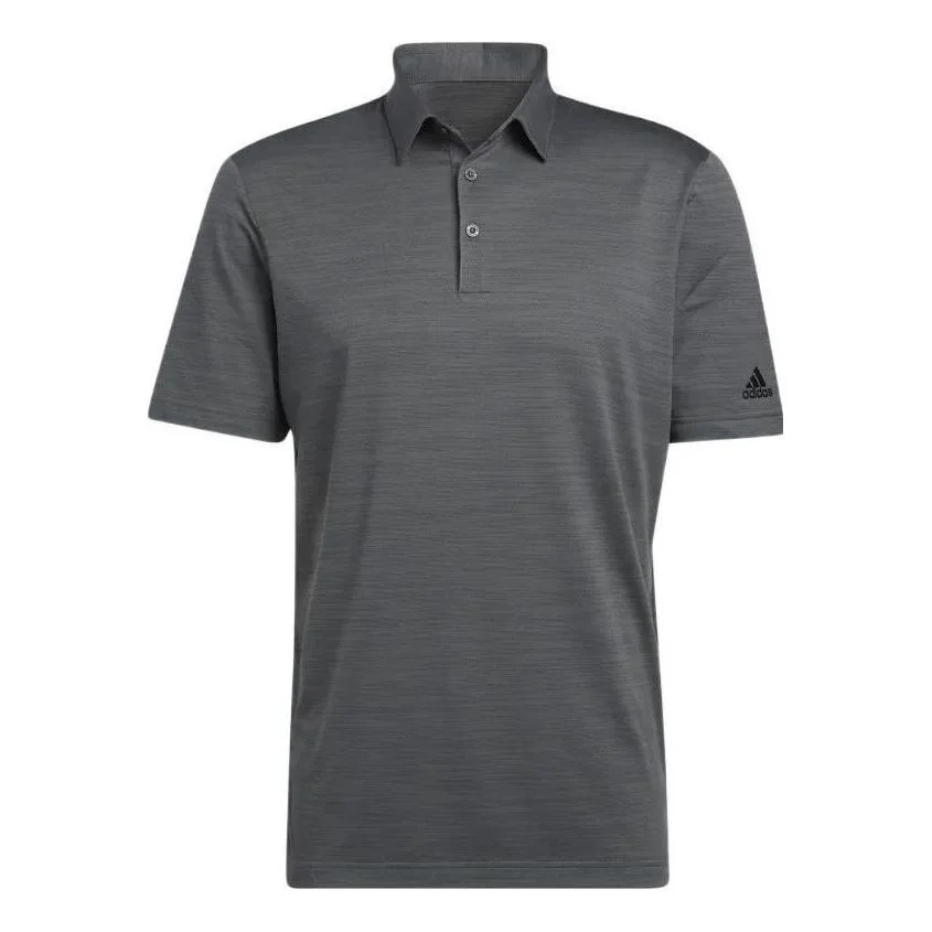Men's adidas Solid Color Logo Micro Mark Golf Sports Short Sleeve Dark Grey Polo Shirt HA9158