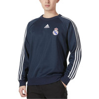 Men's adidas Stripe Logo Pattern Embroidered Round Neck Pullover Autumn Blue HA2531