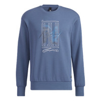 Men's adidas Wj Swt Logo Martial Arts Series Word Printing Sports Round Neck Pullover Blue HE5163
