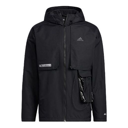 Men's adidas x Transformers Crossover Solid Color Sports Long Sleeves Hooded Jacket Black HM7464