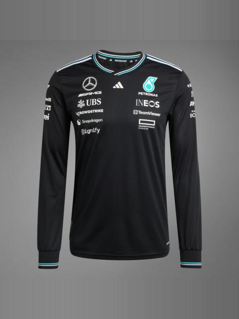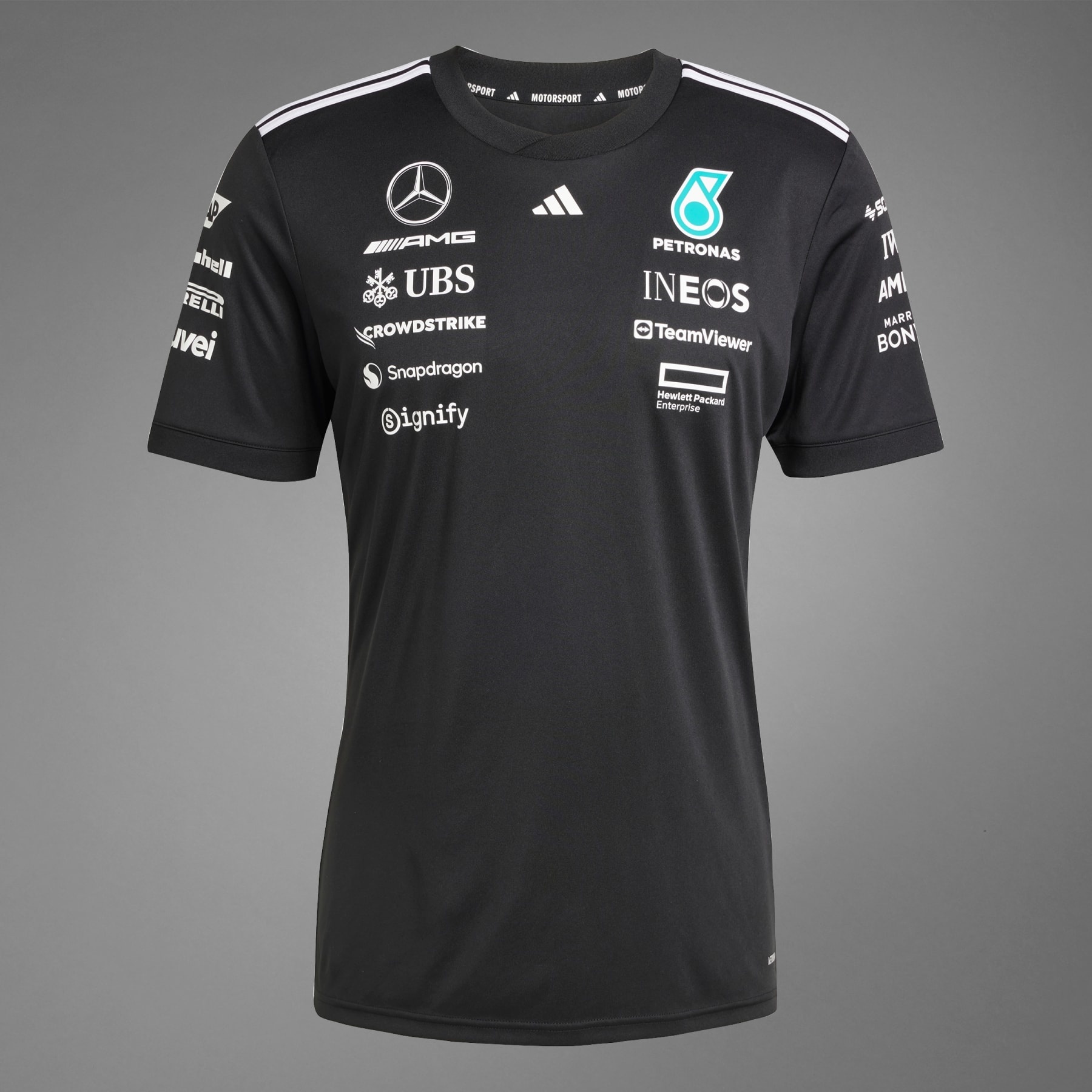An official driver jersey from adidas Motorsports, made with recycled materials. Look and feel like you're ready to take the wheel in this driver jersey from adidas. Built just like the ones worn on race day, this jersey features AEROREADY to manage moisture, providing both outstanding performance and elevated comfort. Mercedes - AMG Petronas Formula One Team logo branding and sponsor logos make the look authentic, while 3-Stripes on the shoulders and the 3 Bar Logo on the chest offer a signature adidas signoff. This product is made with 100% recycled materials. By reusing materials that have already been created, we help to reduce waste and our reliance on finite resources and reduce the footprint of the products we make. Details - Regular fit - Ribbed crewneck - 100% polyester (recycled) - AEROREADY - Mercedes - AMG Petronas Formula One Team logo - Imported - Product code: JW5361 - Product color: Black / White