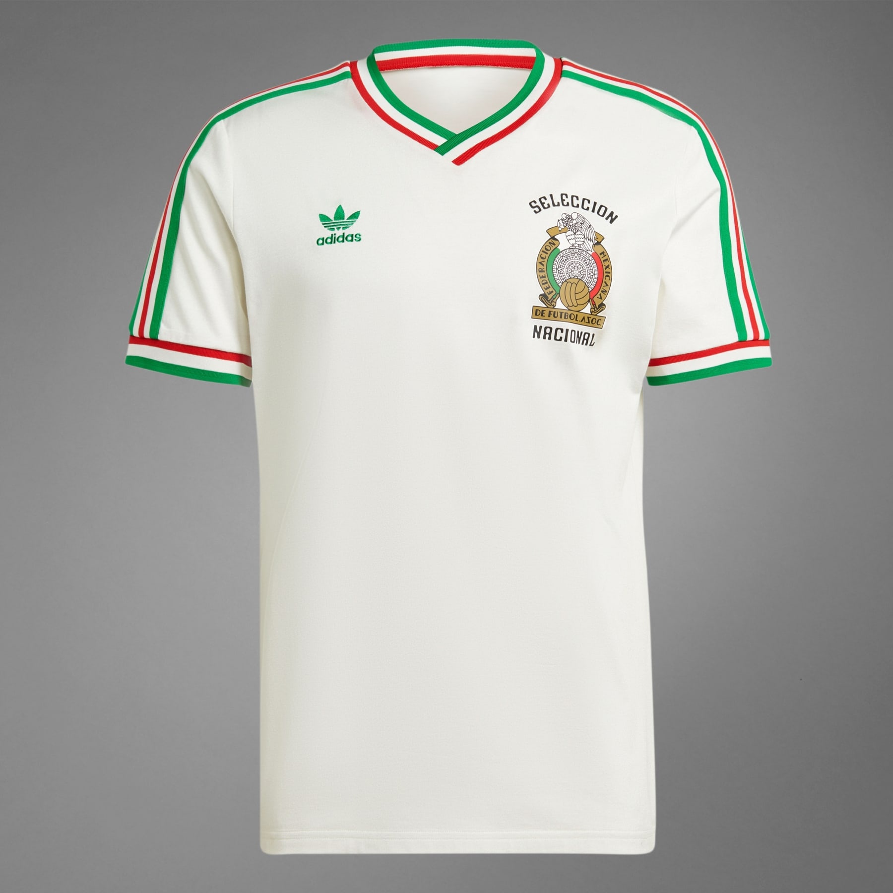 A retro-looking Mexico football jersey made with recycled materials. Relive the classic era of 80s football in a generation-defining jersey. The Mexico 1985 Away Jersey brings back all the splendor of Mexico's football heritage.This short-sleeve jersey takes you back in time by recreating an authentic 80s look, down to the smallest details. Its era-appropriate loose fit, screenprinted federation badge and the classic adidas Trefoil on the chest deliver an instantly recognizable retro look. Whether you wear it pitch-side or when heading off to town, this jersey scores style points wherever you go.Made 100% with recycled materials, this product represents just one of our solutions to reduce waste and the footprint of the products we make. Details - Loose fit - Ribbed V-neck - 63% cotton, 37% polyester (recycled) - Ribbed cuffs - Mexico screenprinted crest - Contains a minimum of 70% recycled and renewable content - Imported - Product code: IT7759 - Product color: Cloud White