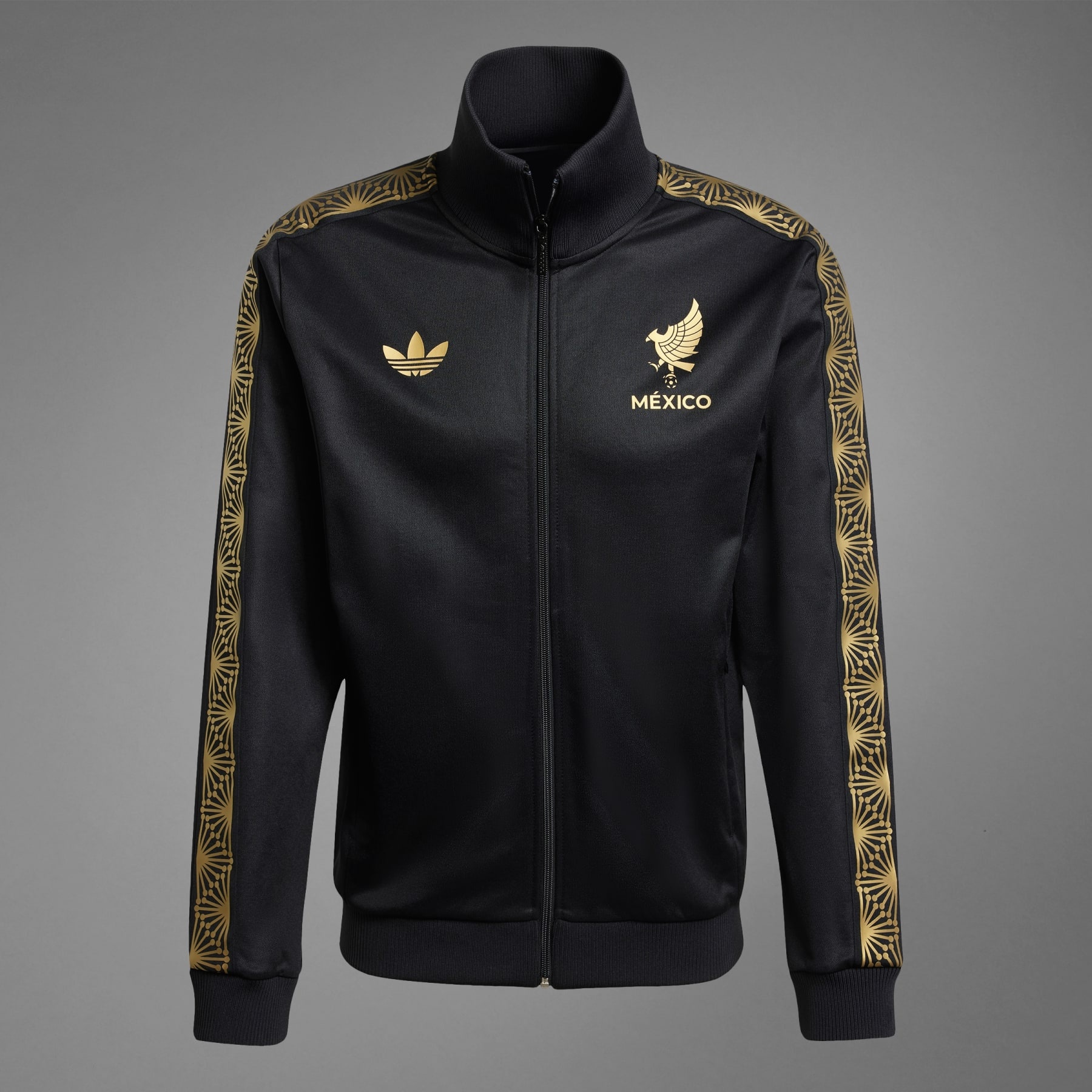 A slim-fitting track top dressed in the colors of a celebratory Mexico kit. This soccer track top displays a team badge, iconic adidas Trefoil and decorative details all finished in gold. It's part of a special adidas Mexico collection that also includes an eye-catching match kit. Zip this slim-fitting top right up to its ribbed stand-up collar to show your support will stand the test of time. Details - Slim fit - Full zip with ribbed stand-up collar - 52% cotton, 48% polyester (recycled) - Front pockets - Ribbed cuffs and hem - Mexico crest - Imported - Product code: JE5335 - Product color: Black