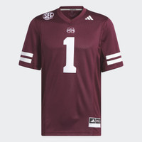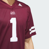 An off-field jersey for Bulldogs fans, made with recycled materials. Get ready to root for the Bulldogs in this adidas football jersey. It's made of comfortable fabric and has mesh panels to keep it breathable at all times. Fire up the grill or kick back with friends while you watch the game. The Mississippi State University colors let everyone know who you support. Made with 100% recycled materials, this product represents just one of our solutions to help end plastic waste. Details - Regular fit - Ribbed V-neck - Main: 100% polyester (recycled) - Shoulders and sleeves: 100% polyester (recycled) - Mesh lower sleeves and side panels - Side slits on droptail hem - Bulldogs printed and sewn-on crests - School artwork and number on back - Imported - Product code: IA3377 - Product color: Team Maroon