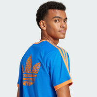 An adidas tee with Trefoil upon Trefoil. Your vibe attracts your tribe, and this adidas t-shirt is all about good vibes. The slim fit hugs the body for a look that's always on point. Ribbed cuffs add a classic finish and a touch of texture. An oversized Trefoil on the back makes a statement with an infill Trefoil monogram print. Details - Slim fit - Ribbed crewneck - 100% cotton - Ribbed cuffs - Imported - Product code: JD0700 - Product color: Blue
