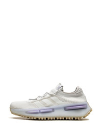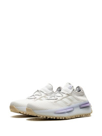 NMD 1 sneakers Highlights - White - Lilac purple - Signature 3-stripes logo - Knitted upper - Contrasting trim - Front lace-up fastening - Chunky rubber lug sole - Branded insole Imported Composition Sole: Rubber 100% Lining: Fabric 100% Outer: Fabric 100%