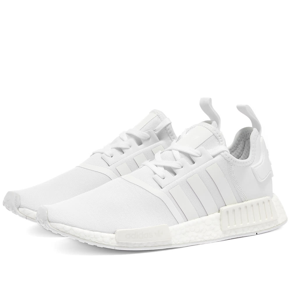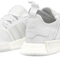 adidas keeps the palette understated on these NMD_R1s, covering them entirely in shades of white. The construction, though, is just as bold and tech fuelled as ever, with a comfortable textile upper, futuristic midsole plugs and, as always, a boost™-cushioned sole. - Textile Uppers - Heel Pull - boost™ Cushioning - Rubber Outsole - Style Code: FY9384