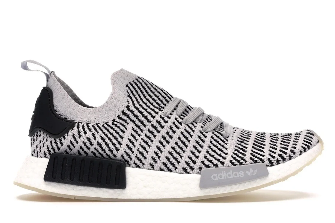 The adidas NMD R1 STLT Grey Black shoe features a gray Primeknit upper with black accents. The Primeknit construction provides a lightweight and breathable feel, while the sock-like collar ensures a snug and supportive fit. Its NMD Boost midsole offers exceptional cushioning and responsiveness, making it ideal for all-day wear. The shoe also incorporates signature NMD details like the EVA plug inserts and the TPU heel cage, adding a touch of urban flair. The complete Primeknit upper is textured and has a black upper with interlaced gray stripes. Branding is mainly absent from the shoe, although a Trefoil heel counter and a heel tab with the NMD Katakana logo are available. What our experts love about the sneaker is the combination of black and gray tones in its design. The shoe's design is completed by a full-length gray two-rubber outsole and a white BOOST midsole with contrast side bumpers. The adidas NMD R1 STLT Grey Black was released in the market on January 4th, 2018. This pair retailed at $170. - Style CQ2387 - Colorway Grey Two/Grey One/Core Black - Retail Price 170 - Release Date 2018-01-04 - Featured false - Product Line adidas NMD