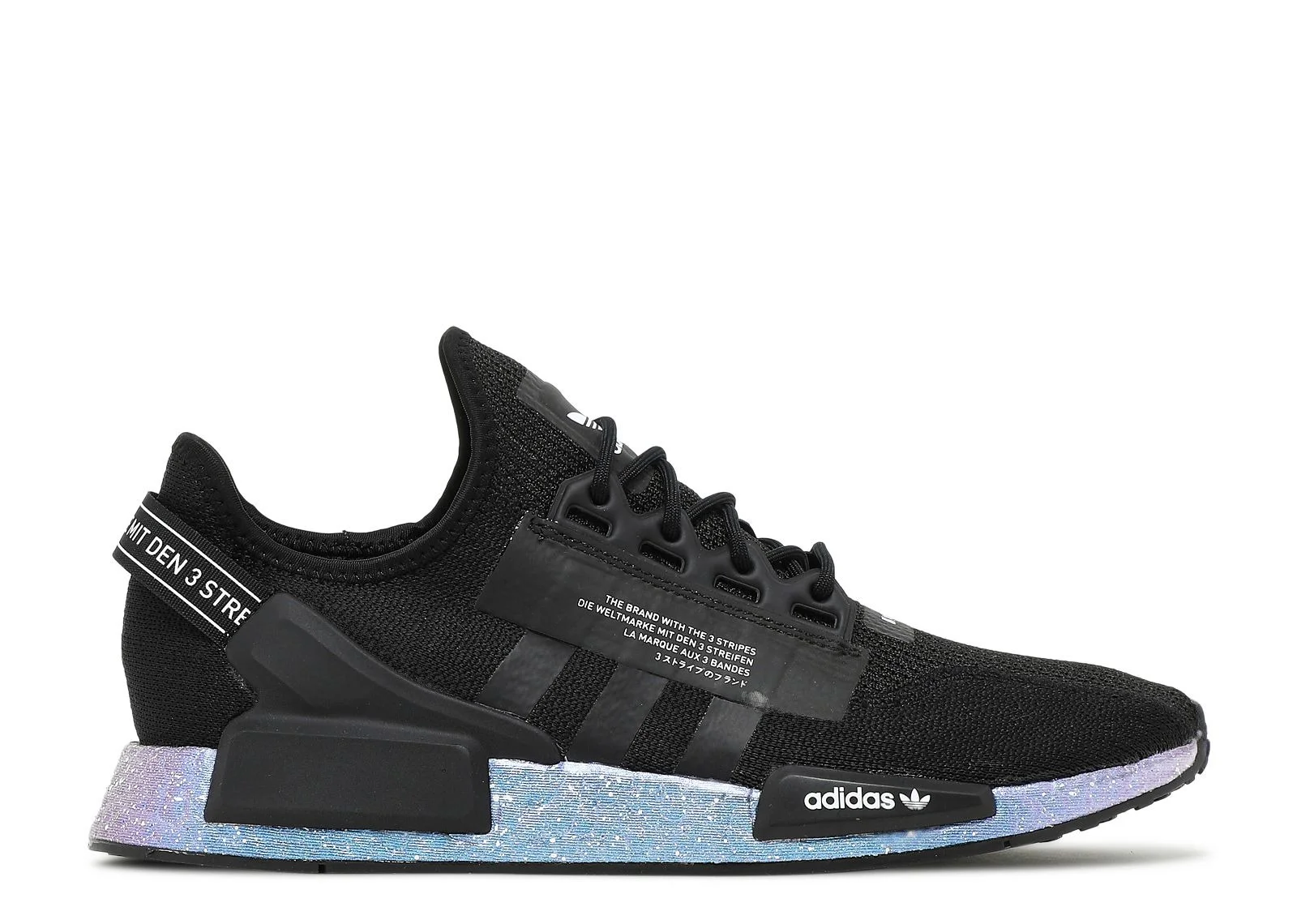 Highlighting its tooling, the NMD_R1 V2 'Black Speckled' sports a contrasting look and a sustainable construction. The shoe's upper features a black knit design built with 50% recycled content and zero virgin polyester. The branding, including on the heel pull-loop, contrasts the look in white, while the two colors are also featured on the EVA plugs, which provide stability underfoot. A speckled, metallic midsole provides cushioning and highlights the design. SKU: GX5164 Colorway: Core Black/Supplier Colour/Cloud White Release Date: 4/1/21