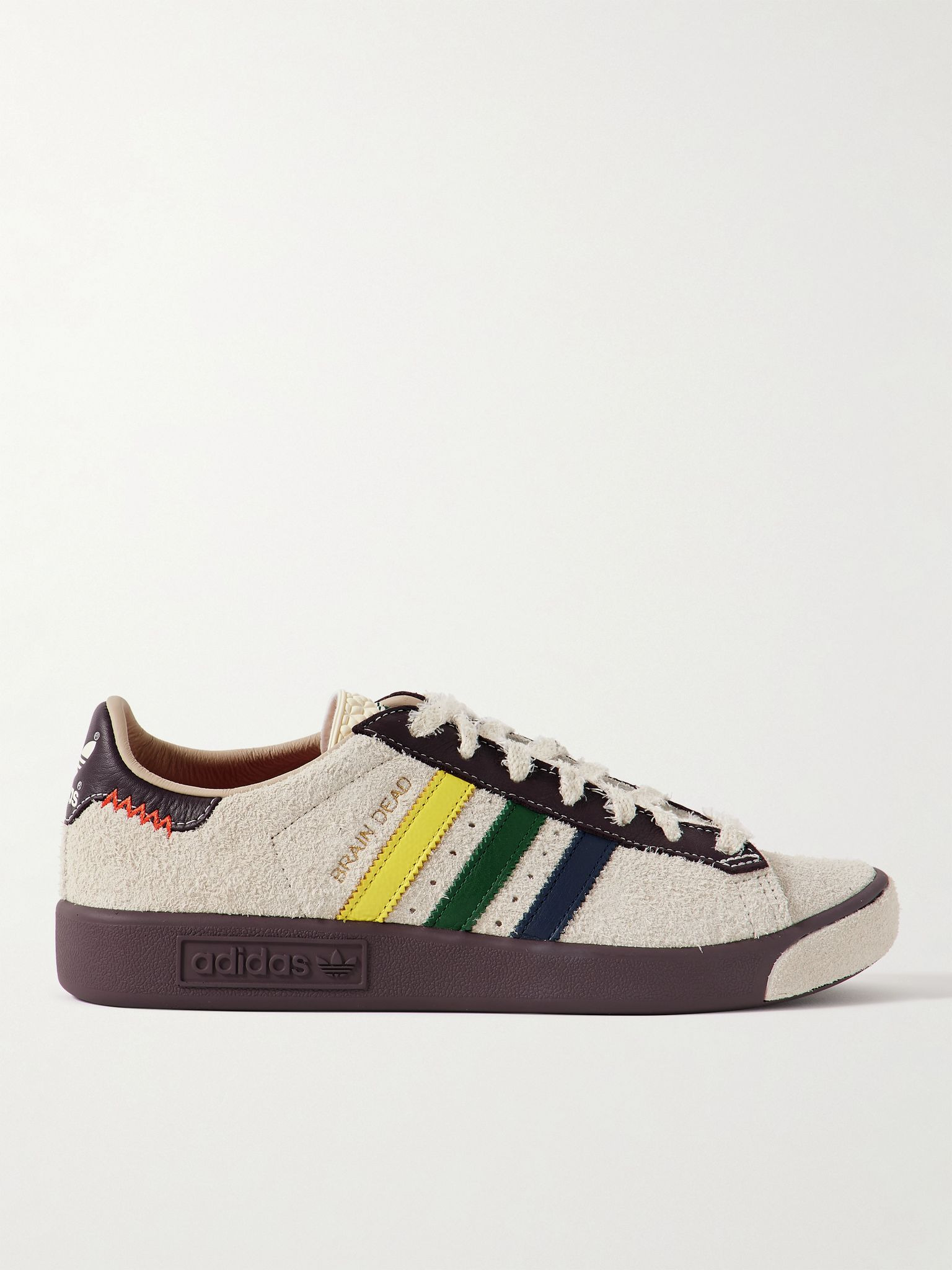 adidas Originals re-imagines the 1976 'Forest Hills' sneakers for today with the help of iconic streetwear brand, Brain Dead. Inspired by the classic low-tops, this pair is made from shaggy brushed-suede and trimmed with contrasting leather. Size & Fit Fits true to size, please refer to Adidas size guide below: - UK 3.5 = US 4/ EU 36 - UK 4 = US 4.5/ EU 36.7 - UK 4.5 = US 5/ EU 37.3 - UK 5 = US 5.5/ EU 38 - UK 5.5 = US 6/ EU 38.7 - UK 6 = US 6.5/ EU 39.3 - UK 6.5 = US 7/ EU 40 - UK 7 = US 7.5/ EU 40.7 - UK 7.5 = US 8/ EU 41.3 - UK 8 = US 8.5/ EU 42 - UK 8.5 = US 9/ EU 42.7 - UK 9 = US 9.5/ EU 43.3 - UK 9.5 = US 10/ EU 44 - UK 10 = US 10.5/ EU 44.7 - UK 10.5 = US 11/ EU 45.3 - UK 11 = US 11.5/ EU 46 - UK 11.5 = US 12/ EU 46.7 - UK 12 = US 12.5/ EU 47.3 - UK 12.5 = US 13/ EU 48 - UK 13 = US 13.5/ EU 48.7 - UK 13.5 = US 14/ EU 49.3 - UK 14 = US 14.5/ EU 50 Details & Care - Cream brushed-suede, navy, green and yellow leather (Pig) - Lace-up - Designer colour: Cream White/ Pantone/ Night Red - Style number: JR7943 - adidas Originals follows its own size guide, therefore the size stated on the box will differ from the one provided in our size chart. To receive your correct fit, please refer to Size & Fit notes