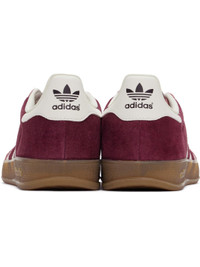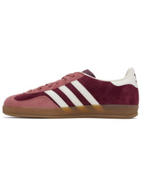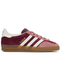 Low-top suede and grained leather sneakers in burgundy and pink. · Lace-up closure · Logo patch at textured and perforated tongue · Padded collar · Signature serrated stripes at sides · Text stamp at outer side · Logo embossed at heel tab · Buffed leather lining · Logo embossed at textured rubber midsole · Treaded rubber sole Supplier color: Maroon/Cloud white/Preloved crimson