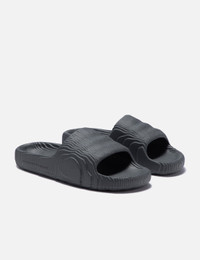 - Adidas Originals - Adilette 22 - Futuristic design elements inspired by 3D topography and human expeditions to Mars - Slip-on - Synthetic upper - Contoured footbed - Printed text lettering detail - EVA cushioning contains 25% plant-based content derived from sugarcane - Soft rubber outsole - Color: Gray/Black - Material: 100% Bio-based EVA - See more Sandals and Shoes