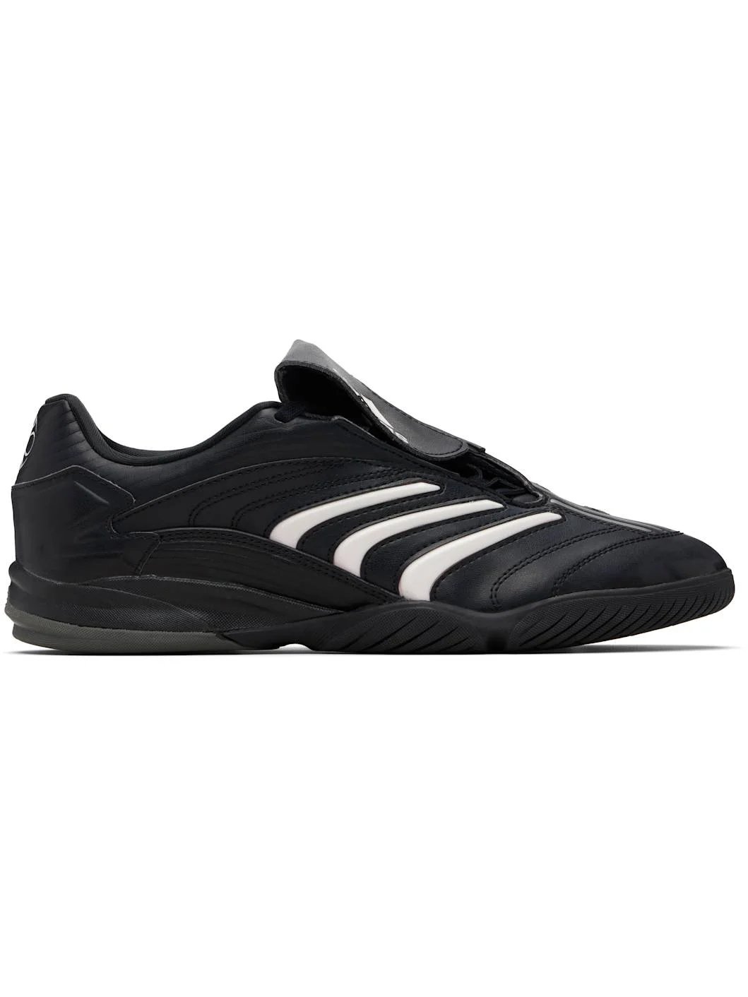 Low-top buffed faux-leather sneakers. · Stripes throughout · Offset lace-up closure · Rubberized trim at vamp · Logo embossed at extended foldover tongue · Quilted padded collar · Graphic embossed at heel tab · Mesh lining · Treaded rubber sole Supplier color: Core black/Zero metallic/Lucid red Upper: synthetic. Sole: rubber. Made in Indonesia 252751M237111