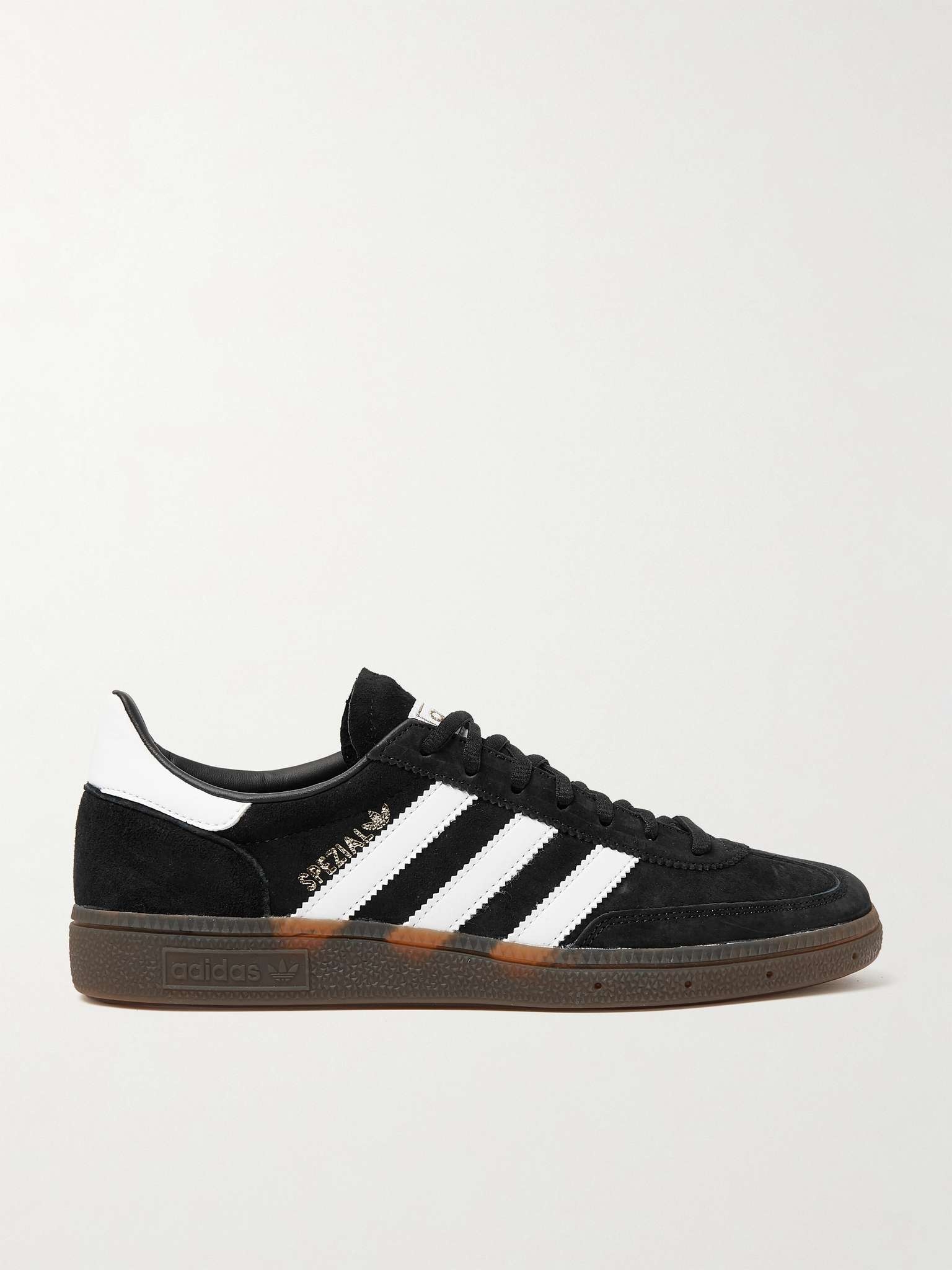 First introduced in 1979, adidas Originals' 'Handball Spezial' sneakers are a mainstay in the sportswear label's lineup and have been issued in a variety of colours over the years. This pair has black suede and white leather uppers and is set on brown rubber soles, which keep them true to their handball roots. Size & Fit Fits true to size, please refer to Adidas size guide below: - UK 3.5 = US 4/ EU 36 - UK 4 = US 4.5/ EU 36.7 - UK 4.5 = US 5/ EU 37.3 - UK 5 = US 5.5/ EU 38 - UK 5.5 = US 6/ EU 38.7 - UK 6 = US 6.5/ EU 39.3 - UK 6.5 = US 7/ EU 40 - UK 7 = US 7.5/ EU 40.7 - UK 7.5 = US 8/ EU 41.3 - UK 8 = US 8.5/ EU 42 - UK 8.5 = US 9/ EU 42.7 - UK 9 = US 9.5/ EU 43.3 - UK 9.5 = US 10/ EU 44 - UK 10 = US 10.5/ EU 44.7 - UK 10.5 = US 11/ EU 45.3 - UK 11 = US 11.5/ EU 46 - UK 11.5 = US 12/ EU 46.7 - UK 12 = US 12.5/ EU 47.3 - UK 12.5 = US 13/ EU 48 - UK 13 = US 13.5/ EU 48.7 - UK 13.5 = US 14/ EU 49.3 - UK 14 = US 14.5/ EU 50 Details & Care - Black suede, white leather (Cow) - Lace-up - Style number: DB3021 - adidas Originals follows its own size guide, therefore the size stated on the box will differ from the one provided in our size chart. To receive your correct fit, please refer to Size & Fit notes