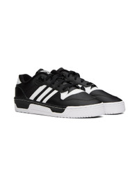 Low-top grained leather sneakers in black. Perforated detailing throughout. · Lace-up closure · Padded tongue and collar · Logo printed at heel tab · Signature stripes at sides · Jersey lining · Logo-embossed textured rubber midsole · Treaded rubber sole Supplier color: Core black/White